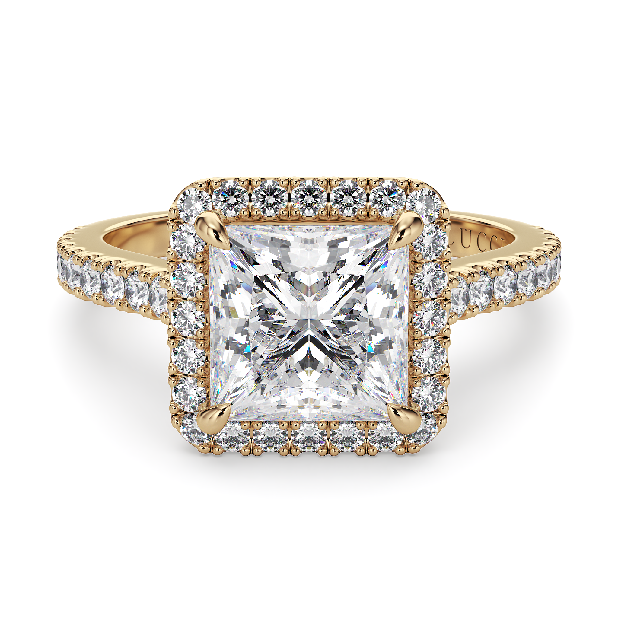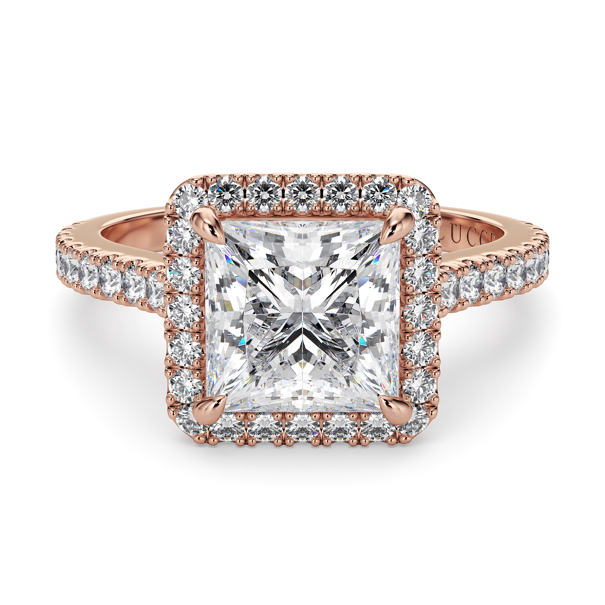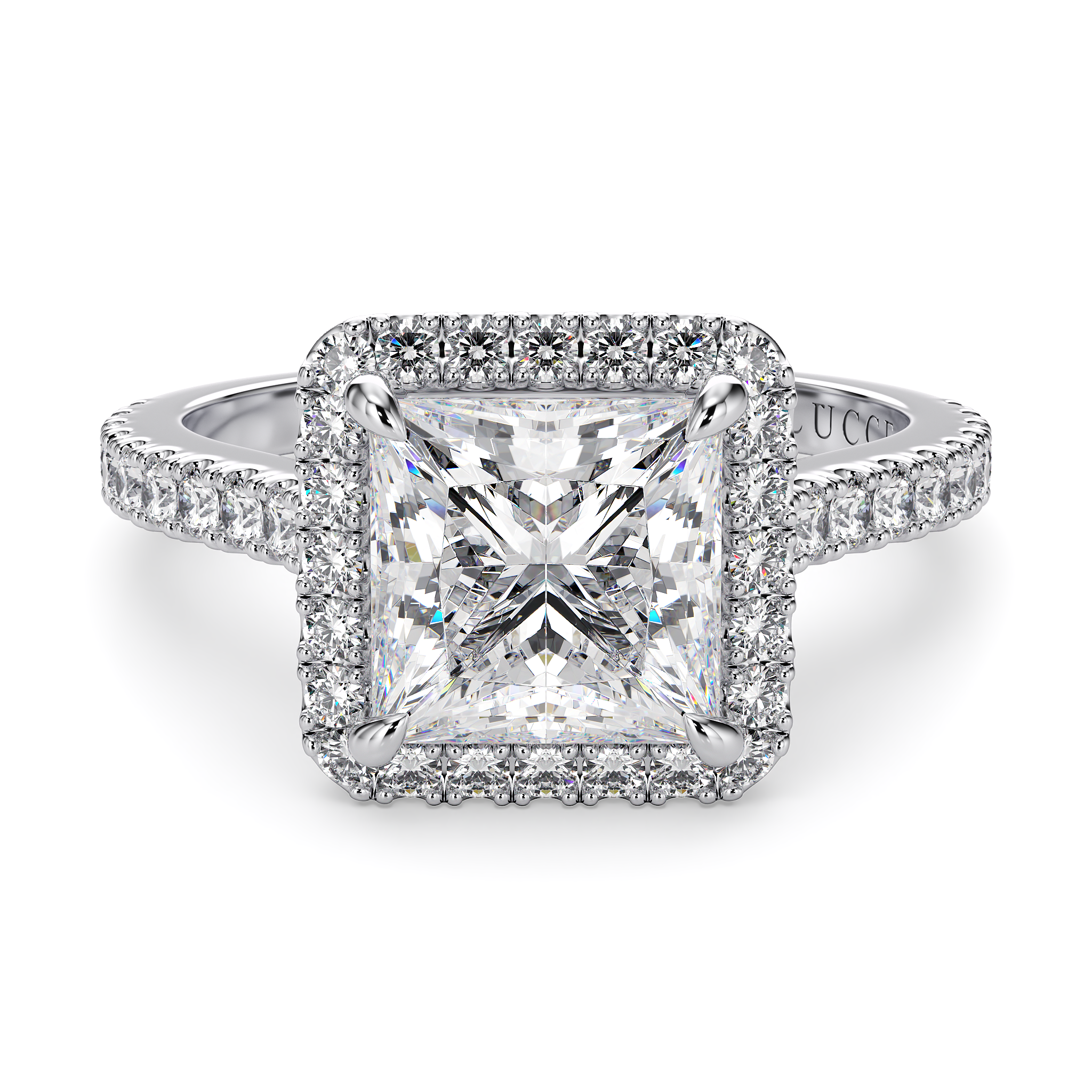 This forever piece features a halo pavé setting with Lucce’s signature tapered bridge. This princess cut diamond engagement ring's timeless design speaks of a love without end, just like the halo itself. And like the halo of an angel, it reflects how she’s brought light into your life, made you better, and inspired you to be the best partner you can be for her, always.