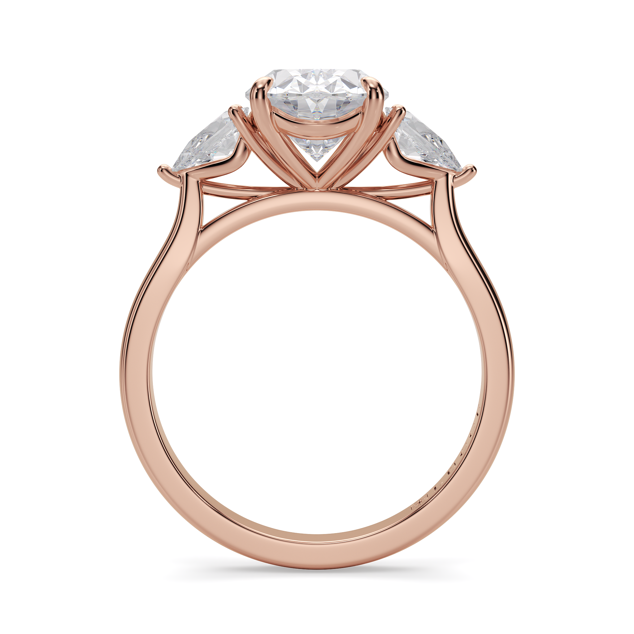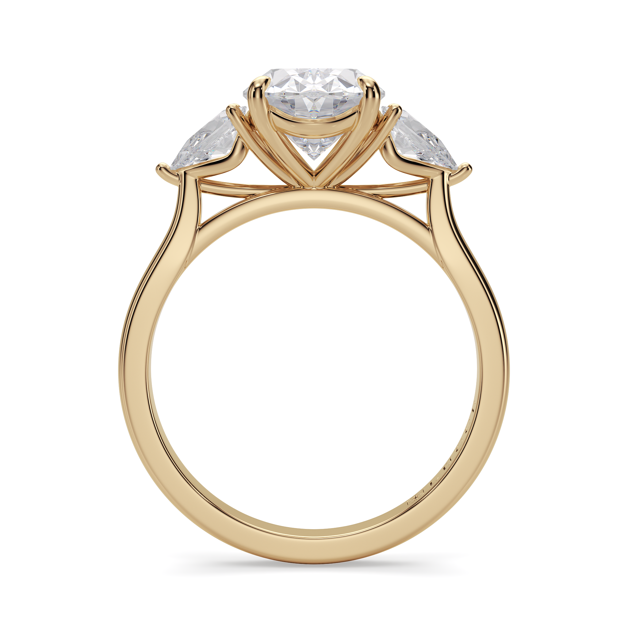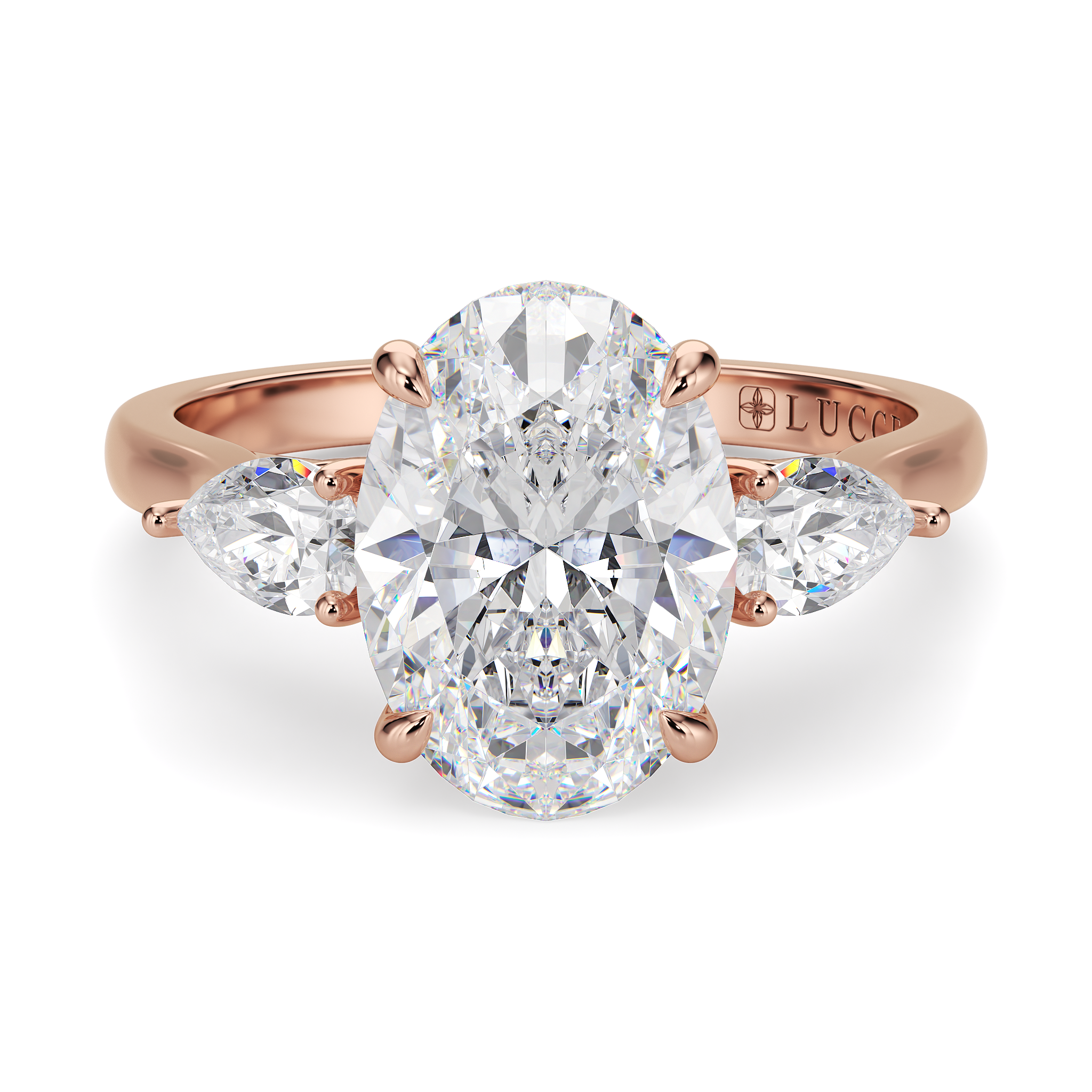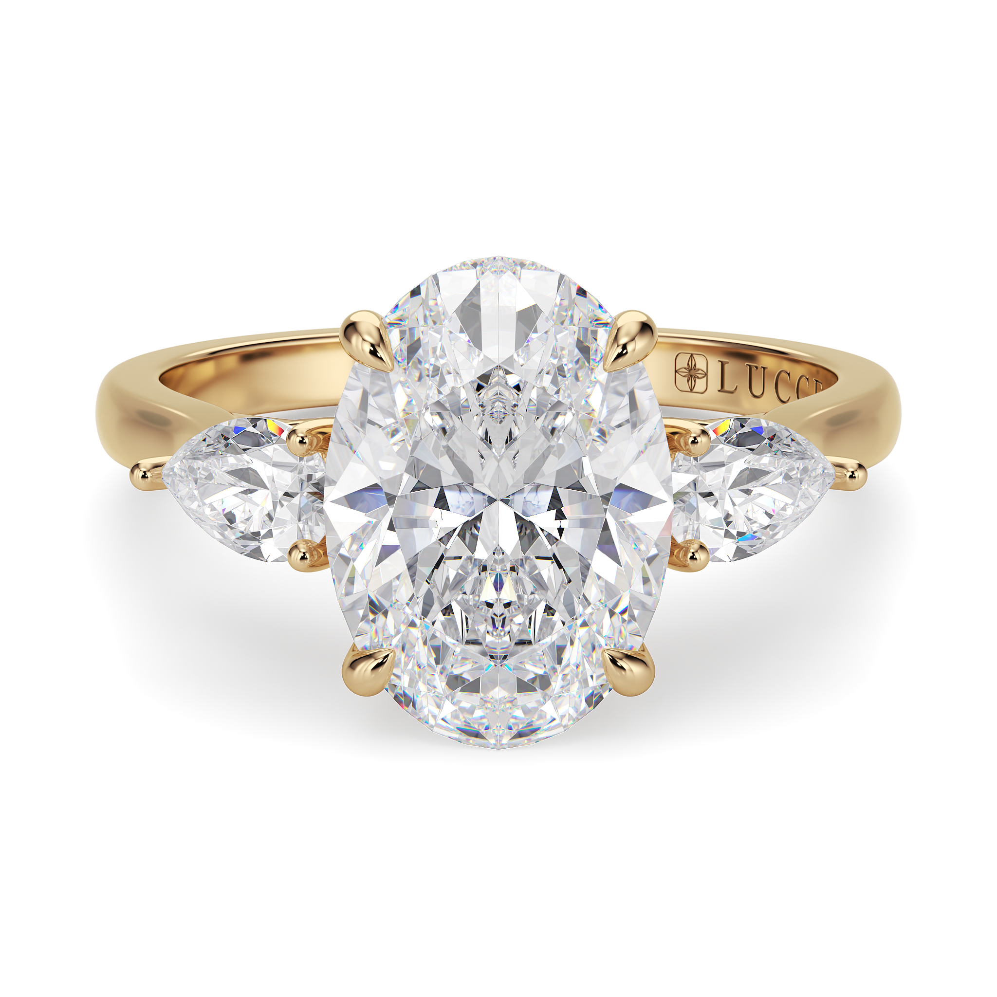 This forever piece is Lucce’s modern, luxurious take on the timeless three-stone ring. This oval cut engagement ring's trio of diamonds blooms like a bouquet, each stone representing the love you’ve shared in the past, share in the present, and will share in the future. It’s like saying I love you, not just once, but as a promise you’ll keep whispering for a lifetime.