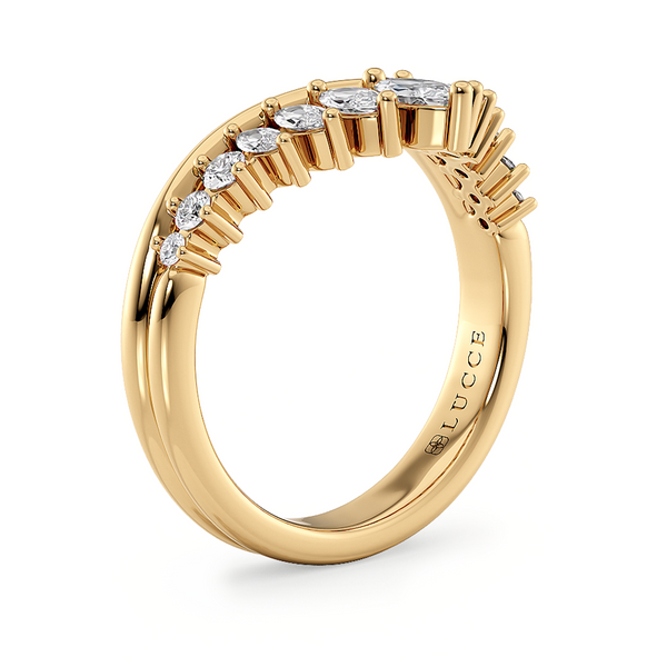 The Lucce Women's Wedding Rings Design Collection features the latest trends in a thoughtful selection of elegant diamond wedding bands to perfectly match with various engagement ring settings. These wedding ring designs have won us "best bespoke wedding ring designer" at the 2020 Global Wedding Awards.