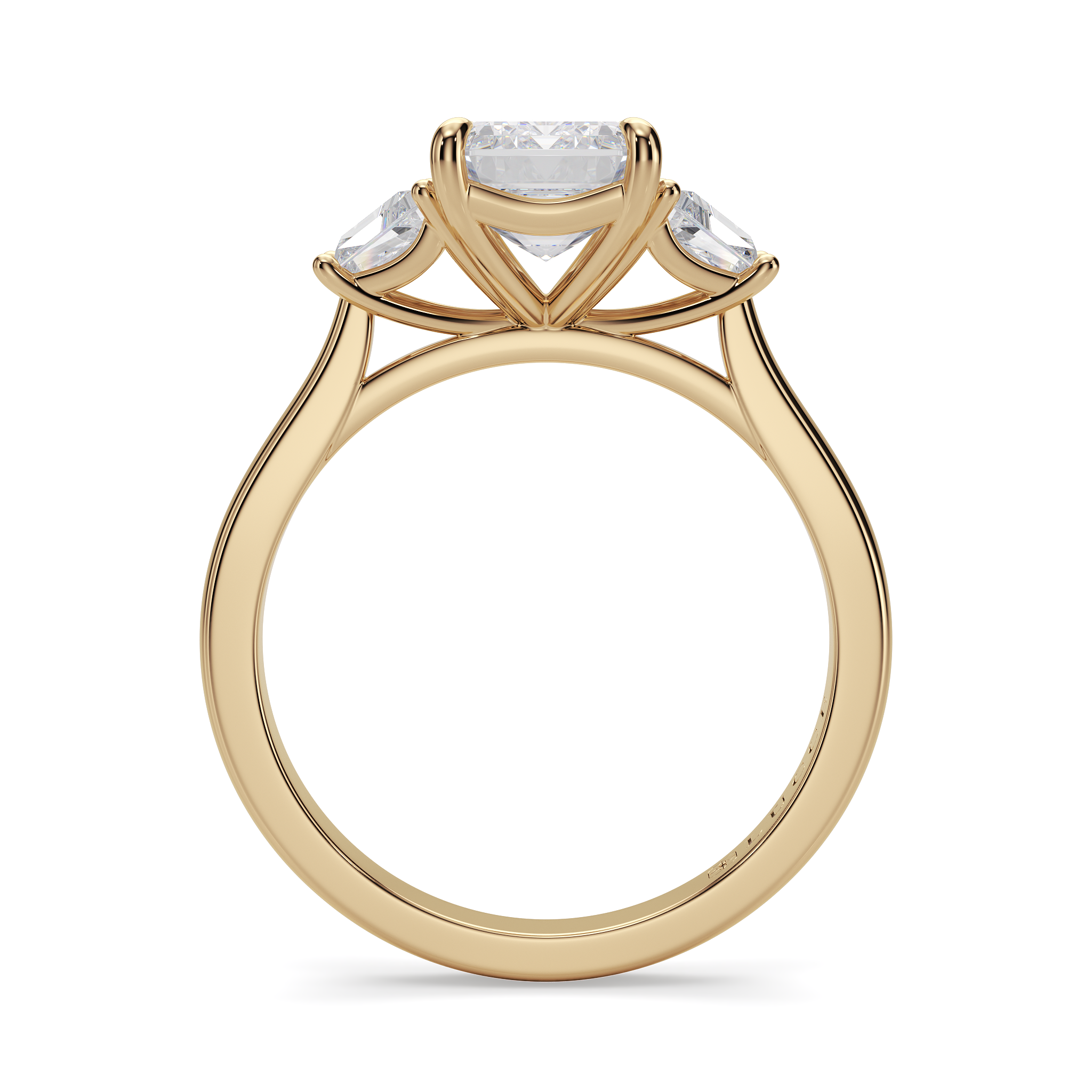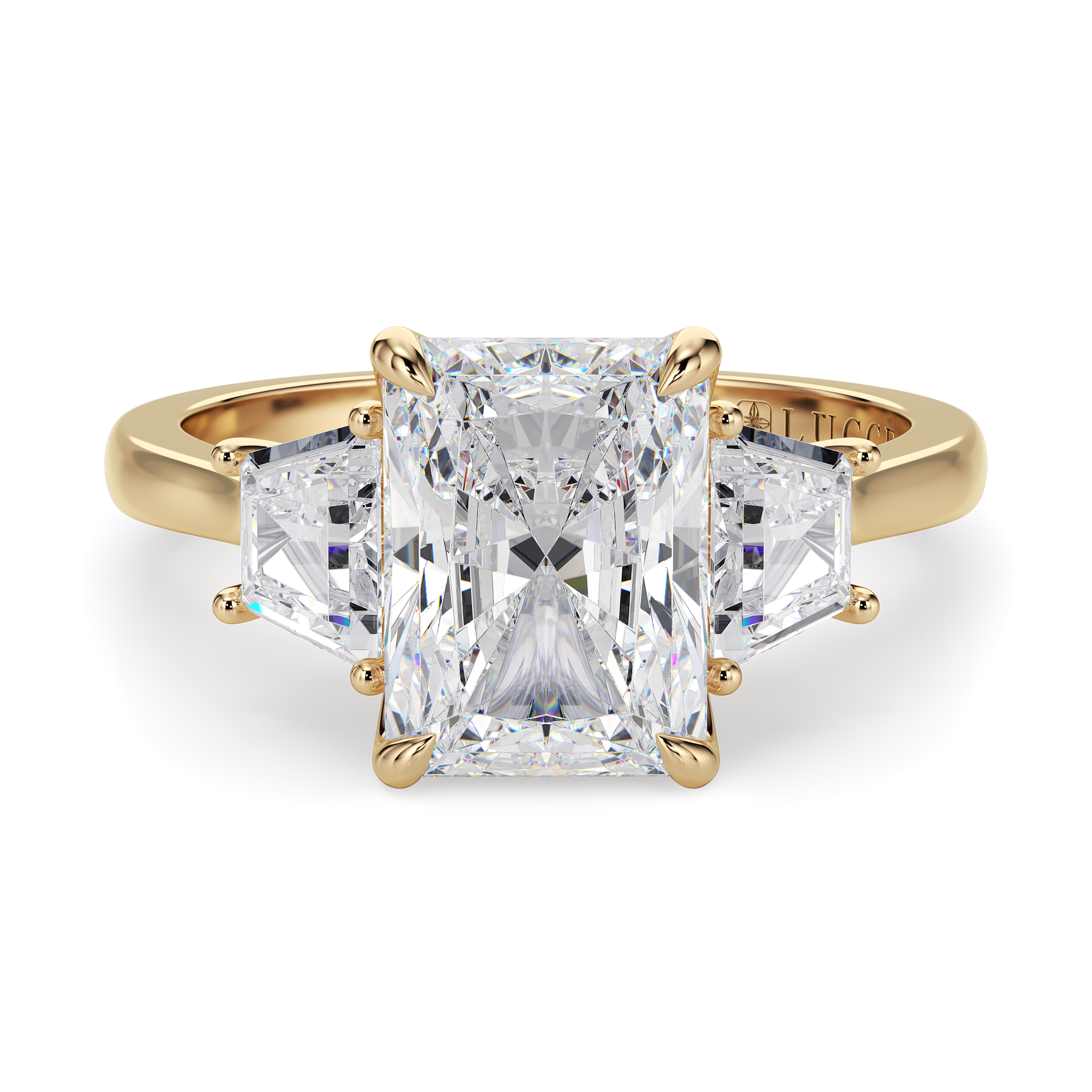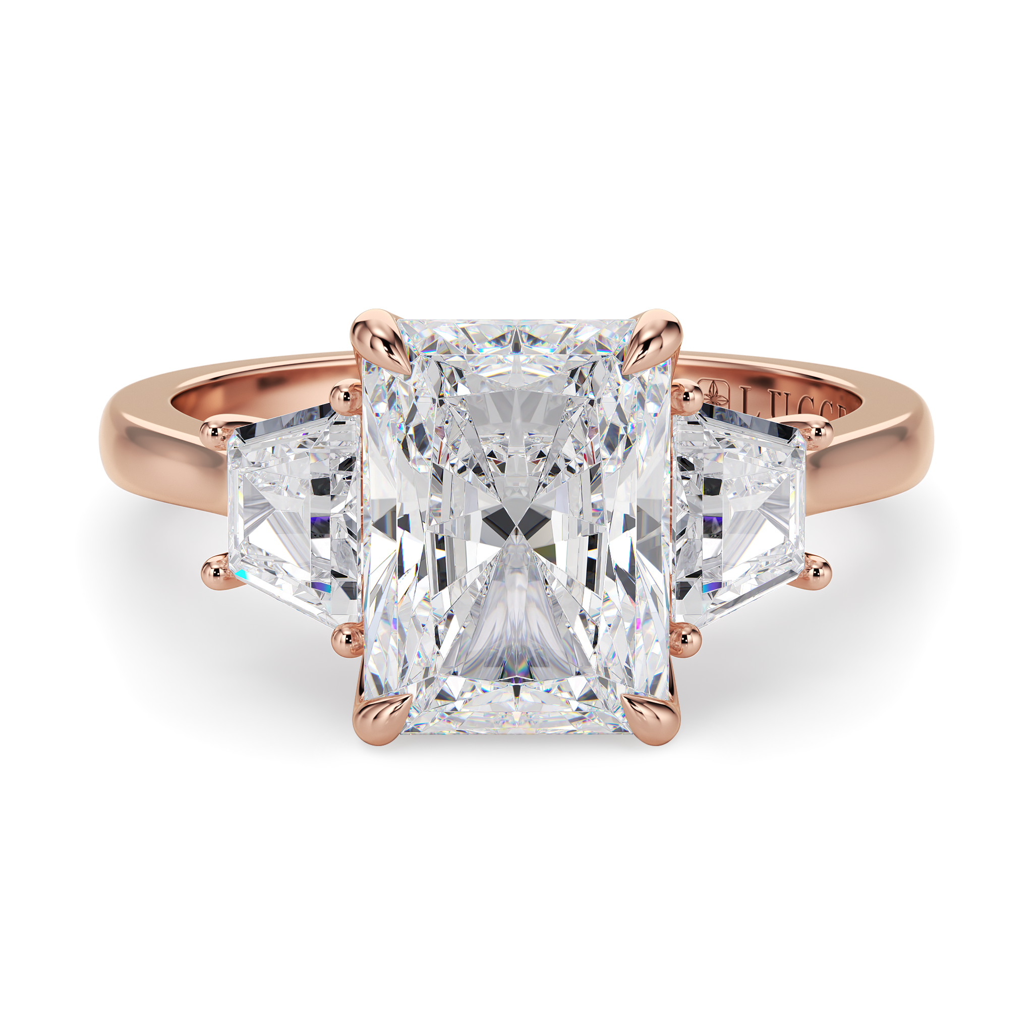 This forever piece is Lucce’s modern, luxurious take on the timeless three-stone ring. This radiant cut engagement ring's trio of diamonds blooms like a bouquet, each stone representing the love you’ve shared in the past, share in the present, and will share in the future. It’s like saying I love you, not just once, but as a promise you’ll keep whispering for a lifetime.