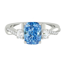 Lucce Fiore Trio Cushion Ocean Blue Lab Diamond 0.77ct Fancy Vivid Blue VVS2 Ex IGI 14K White Gold