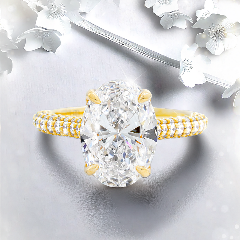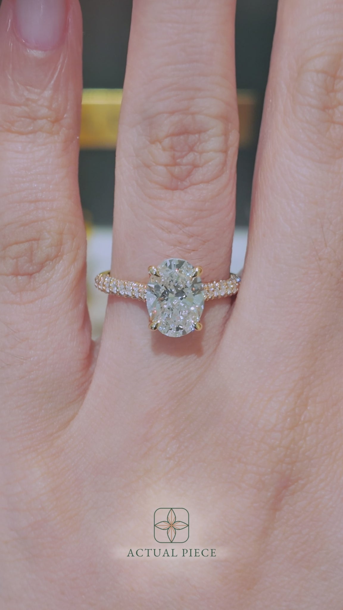 This forever piece is crafted with meaningful details, perfect for an unforgettable proposal. This oval cut diamond engagement ring features a radiant tri-row band, a graceful cathedral setting with tapered bridge accents, and Lucce’s signature petal prongs. The tri-row band sparkles from every angle, just like her, beautiful in every way you see her. This ring speaks of a love that says she deserves everything, and of your heartfelt promise to give her nothing less than your all.