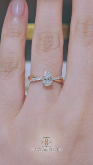 This forever piece features a twisting accented band and Lucce’s signature petal prongs. This pear cut diamond engagement ring's vine-like band symbolizes two lives intertwined by love, forming an infinity that speaks of a bond that is unbreakable. Like a delicate flower found in vines, it reflects how you found her, beautiful, one-of-a-kind, and meant to be.