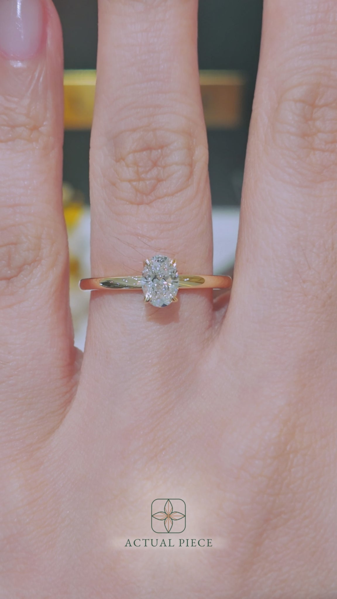 This forever piece features delicate petal prongs and a timeless solitaire band, a design that finds its beauty in simplicity, much like the love you share: quiet, genuine, and deeply content. This oval cut diamond engagement ring's solitaire band is a symbol of devotion, a reminder that she is the only one your heart desires. Like a tulip in full bloom, she is graceful in her simplicity, yet endlessly captivating.
