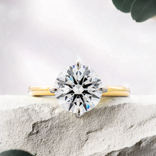 This forever piece features a solitaire and compass setting with four petal-shaped platinum prongs that echo Lucce’s iconic emblem. This round cut diamond engagement ring's platinum compass prongs symbolize how, through both good times and challenges, your love always leads you back to each other. The solitaire setting speaks of a love that chooses only her, like a diamond that outshines all others. It is a quiet promise that no matter what life brings, you will always be her unwavering constant.