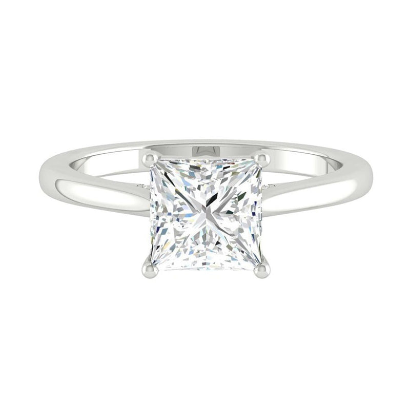 This is a piece made for the true romantic featuring the most stunning princess cut, displayed with a curved gallery rail and framed by cathedral arches. She is beauty and brilliance, made into one timeless engagement ring.