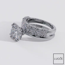 A dazzling fusion of vintage charm and modern elegance. This exquisite ring features a mesmerizing arrangement of princess-cut and round-cut stones, meticulously set to evoke the glamour of the Art Deco era. With its striking geometric patterns and intricate details, it exudes sophistication and allure.