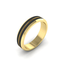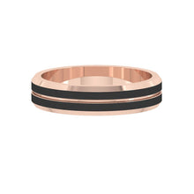 Lucce's Dion ring features two sleek black ruthenium lines running the length of the ring, adding a touch of edgy sophistication to its timeless appeal. Crafted for the confident man who embraces his individuality, this band effortlessly combines strength and style.