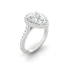 This forever piece features a halo pavé setting with Lucce’s signature tapered bridge. This pear cut diamond engagement ring's timeless design speaks of a love without end, just like the halo itself. And like the halo of an angel, it reflects how she’s brought light into your life, made you better, and inspired you to be the best partner you can be for her, always.