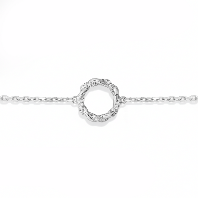 These forever piece features a twisting accented center piece, symbolizing two lives intertwined by love. These bracelet with diamond accents have a vine-like design, forming an infinity that speaks of a bond that is unbreakable. Like a delicate flower found in vines, it reflects how you found her, beautiful, one-of-a-kind, and meant to be.
