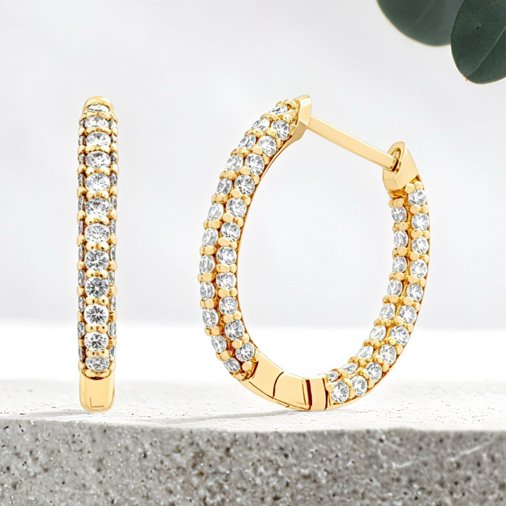 These forever pieces feature diamond hoops with a tri-row pavé setting. These diamond hoop earrings' timeless design speaks of a love without end, just like the pavé itself. It reflects how she’s brought light into your life, made you better, and inspired you to be the best partner you can be; for her, always.