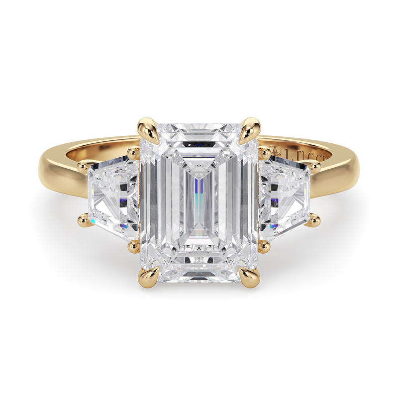 This forever piece is Lucce’s modern, luxurious take on the timeless three-stone ring. This emerald cut engagement ring's trio of diamonds blooms like a bouquet, each stone representing the love you’ve shared in the past, share in the present, and will share in the future. It’s like saying I love you, not just once, but as a promise you’ll keep whispering for a lifetime.