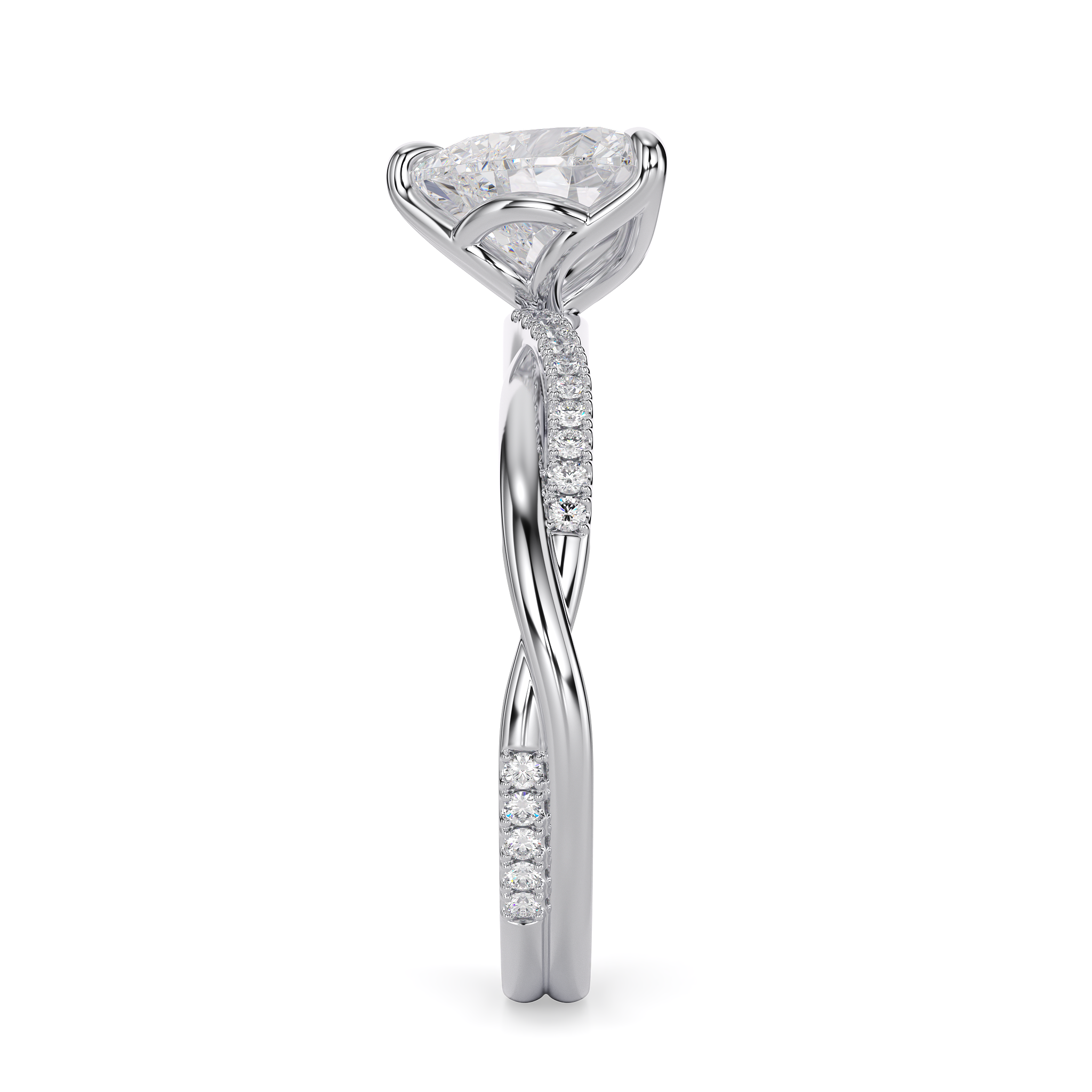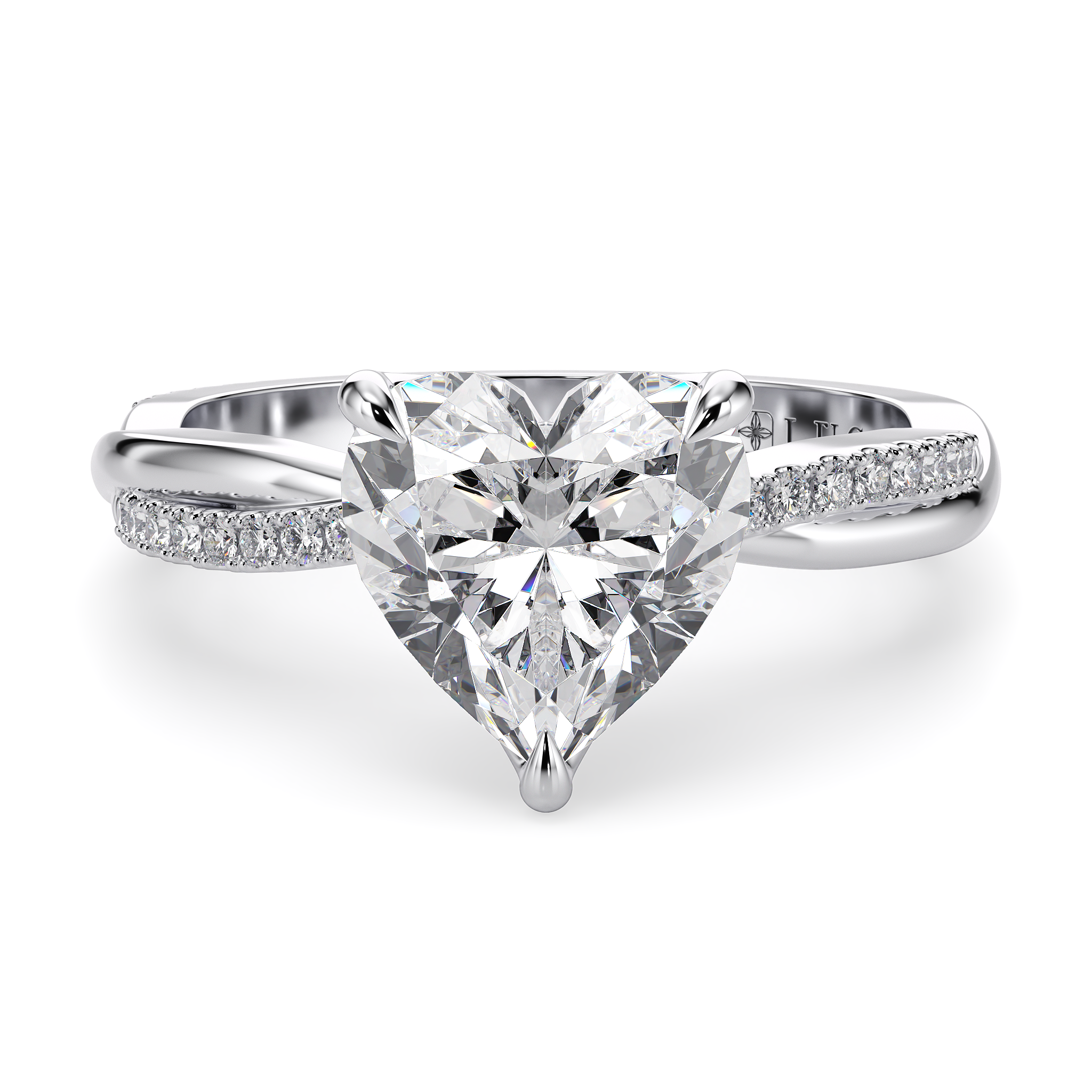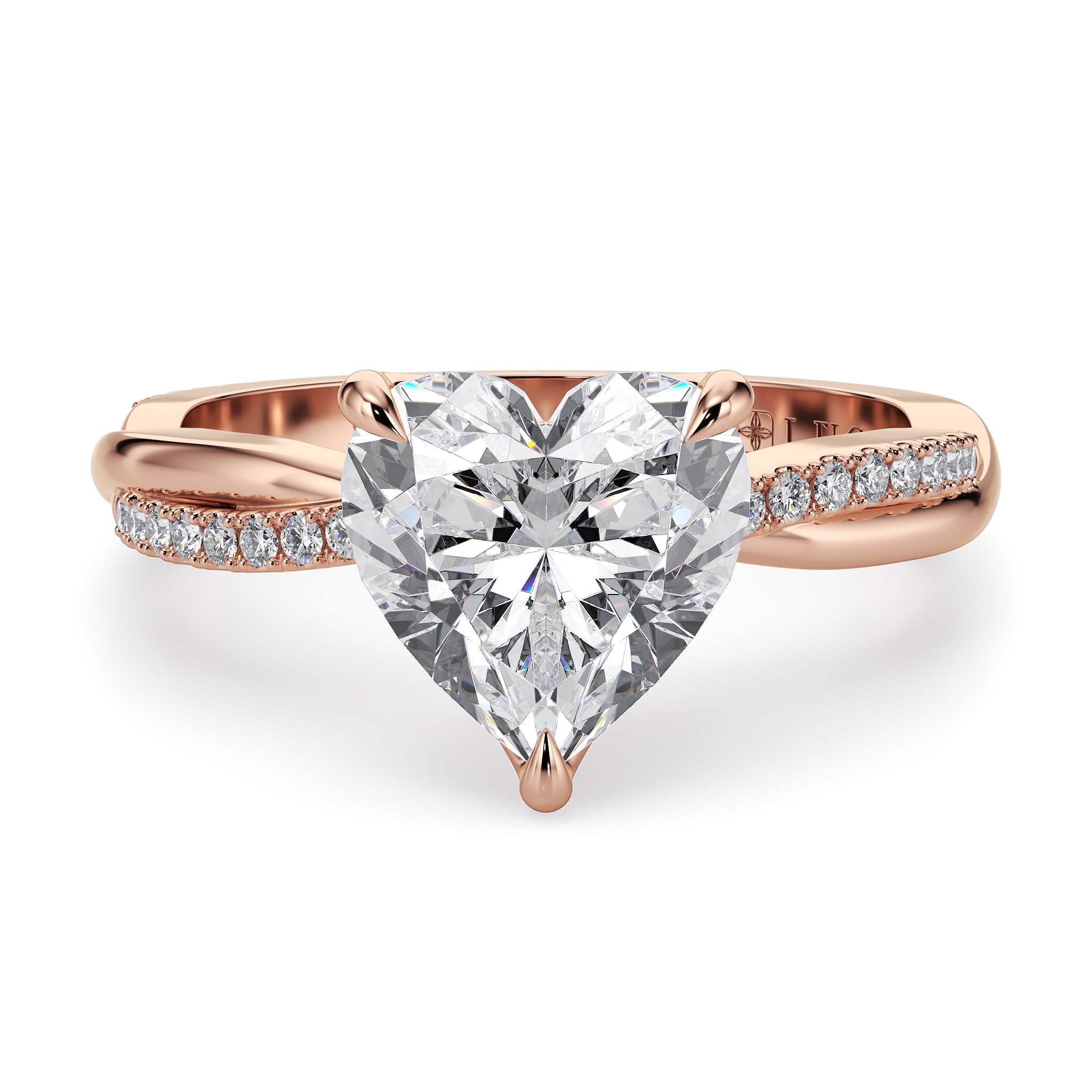 This forever piece features a twisting accented band and Lucce’s signature petal prongs. This heart cut diamond engagement ring's vine-like band symbolizes two lives intertwined by love, forming an infinity that speaks of a bond that is unbreakable. Like a delicate flower found in vines, it reflects how you found her, beautiful, one-of-a-kind, and meant to be.