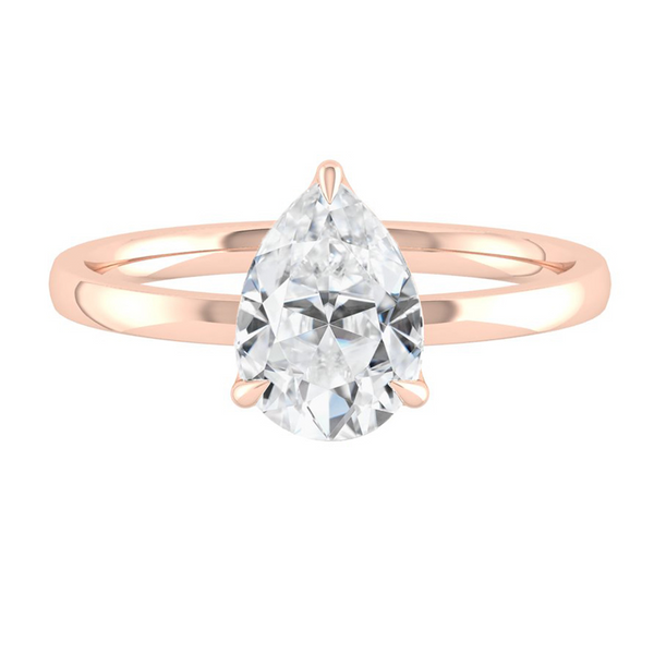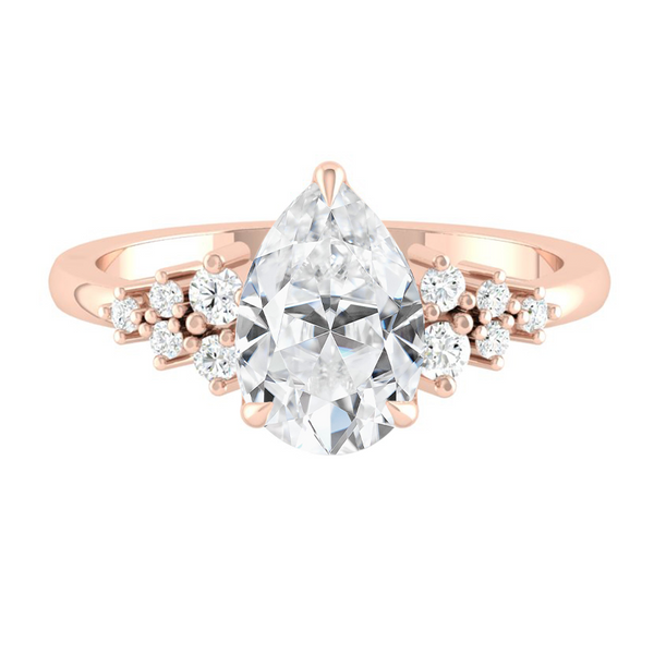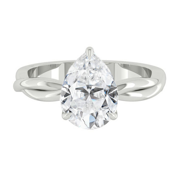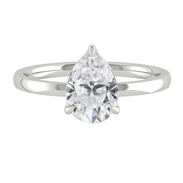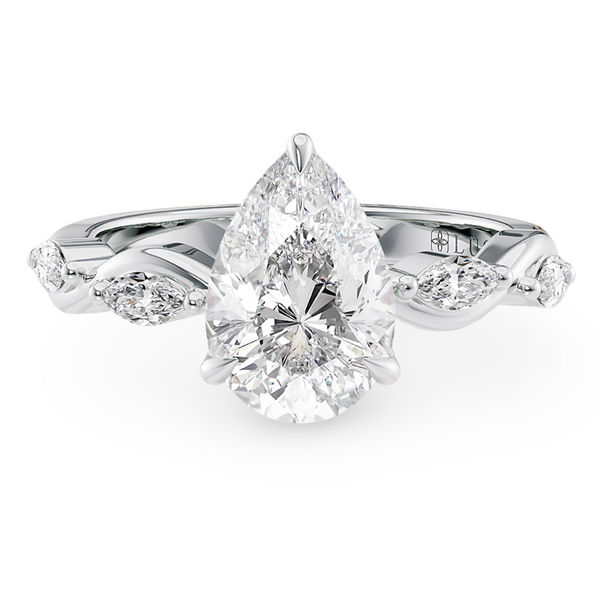 Like the oval and marquise cuts, the flattering pear shape engagement ring elongates the finger—especially when worn with the point facing the nail.