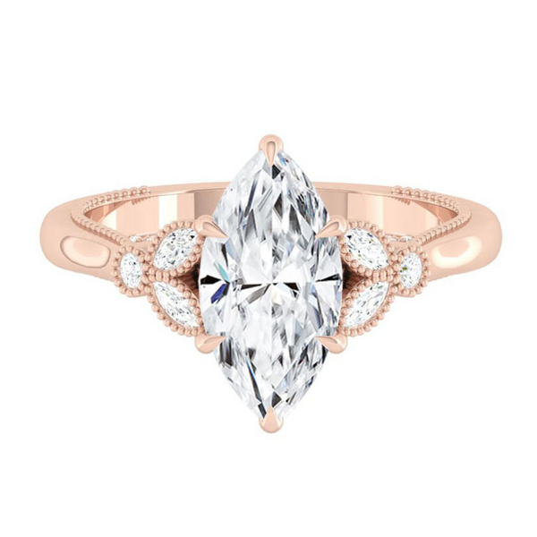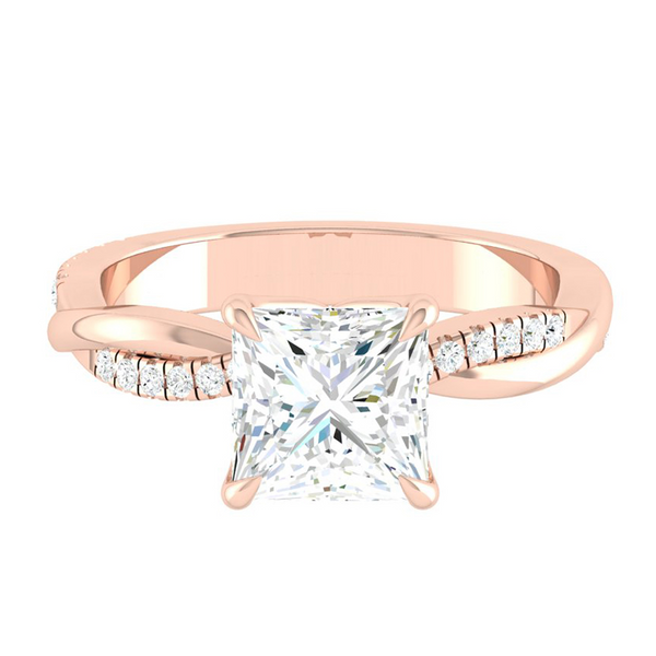 These unique diamond engagement rings feature our signature petal prongs that wraps the center natural or lab diamond in a sweet embrace.