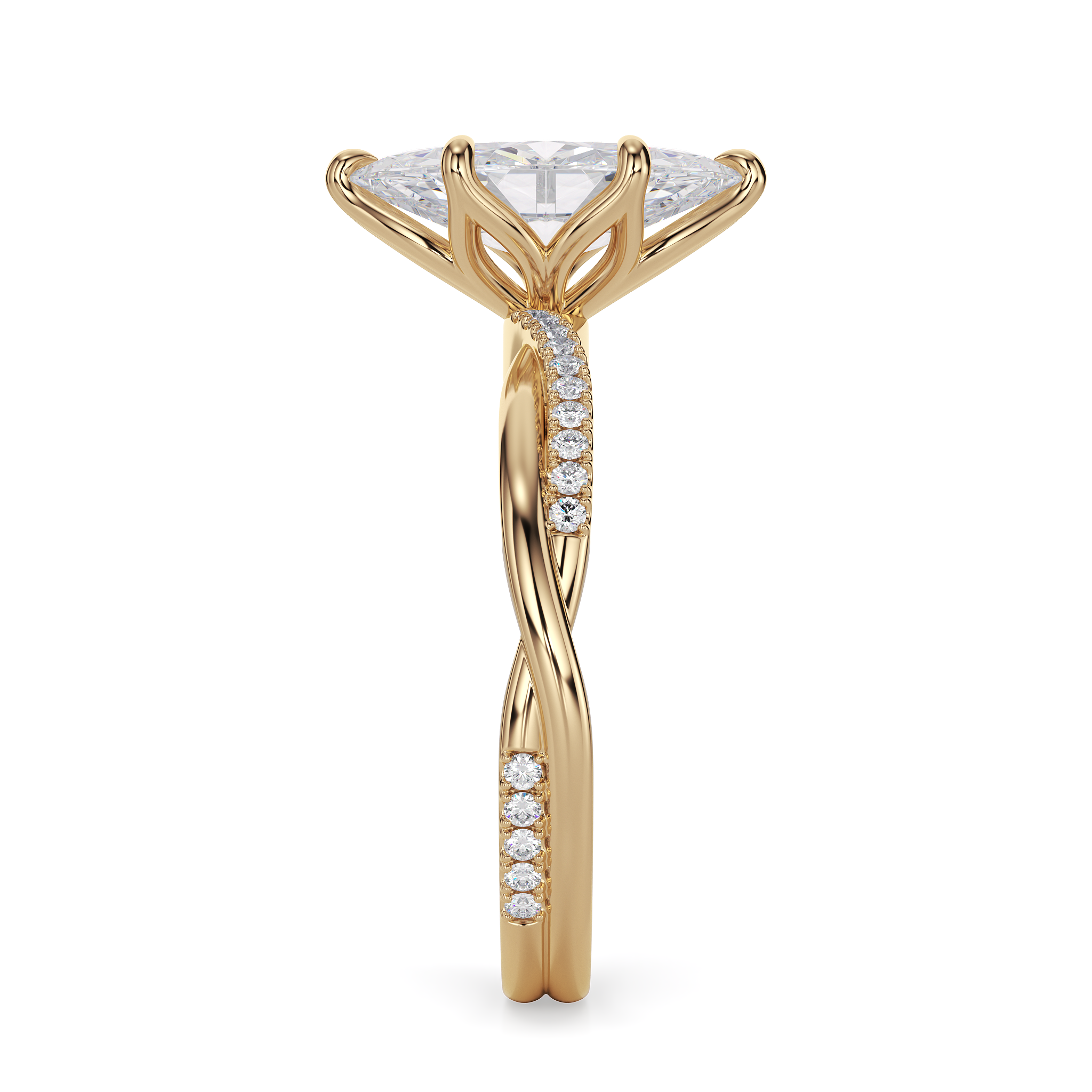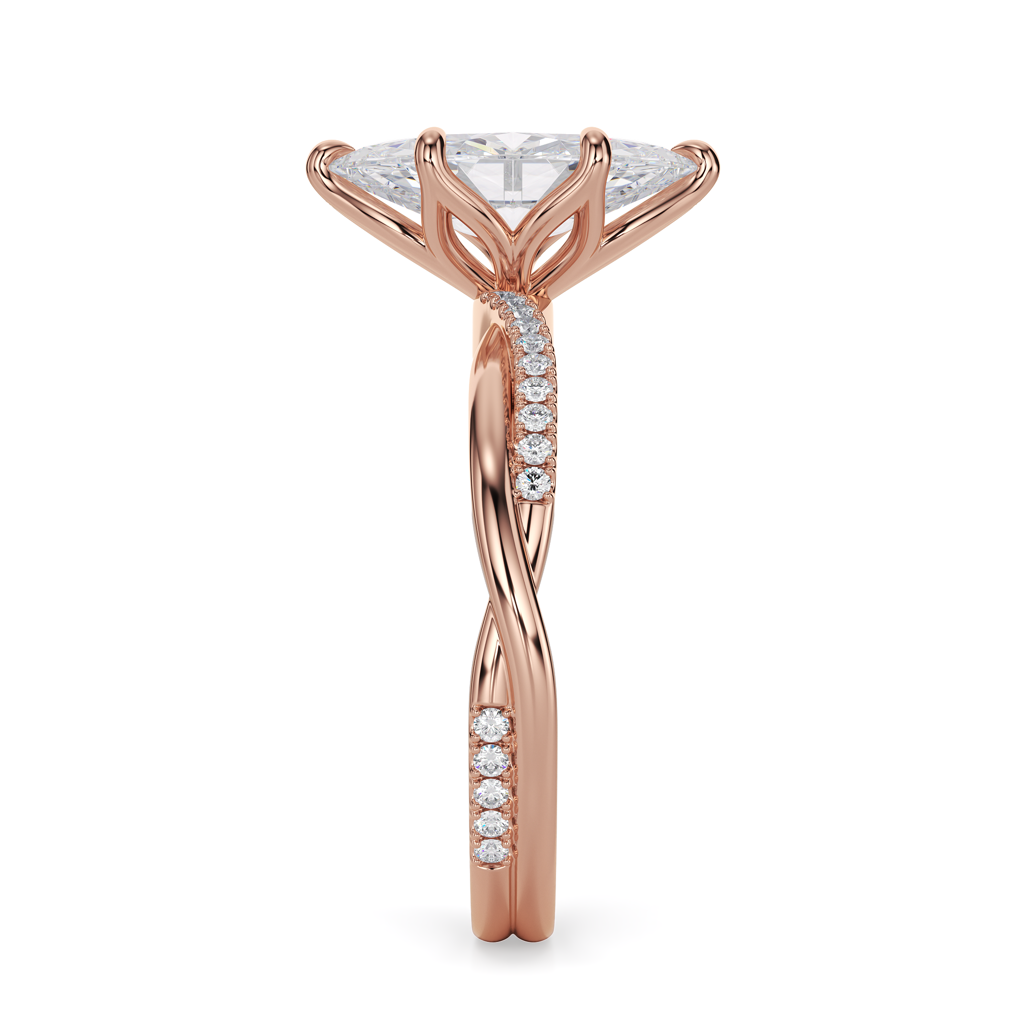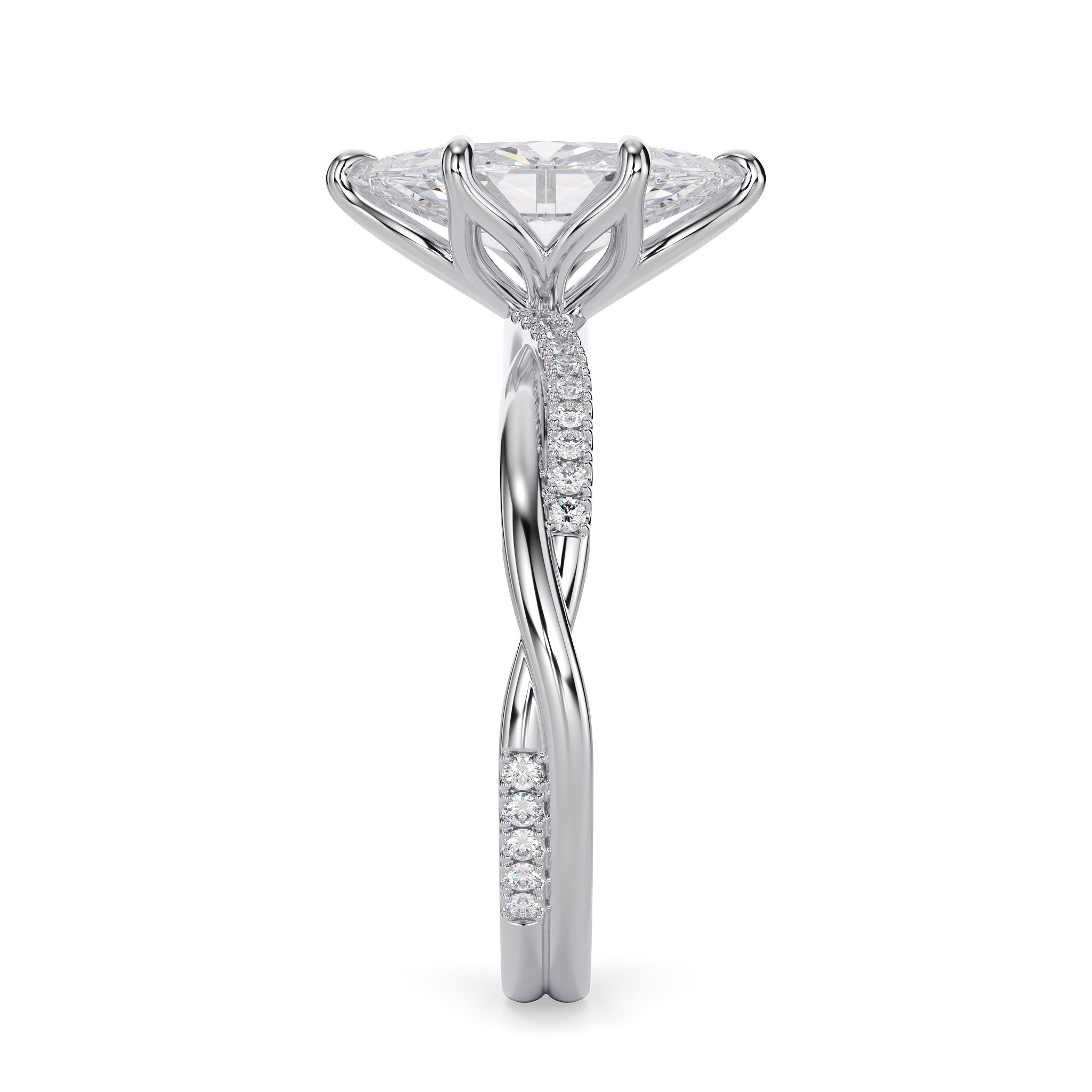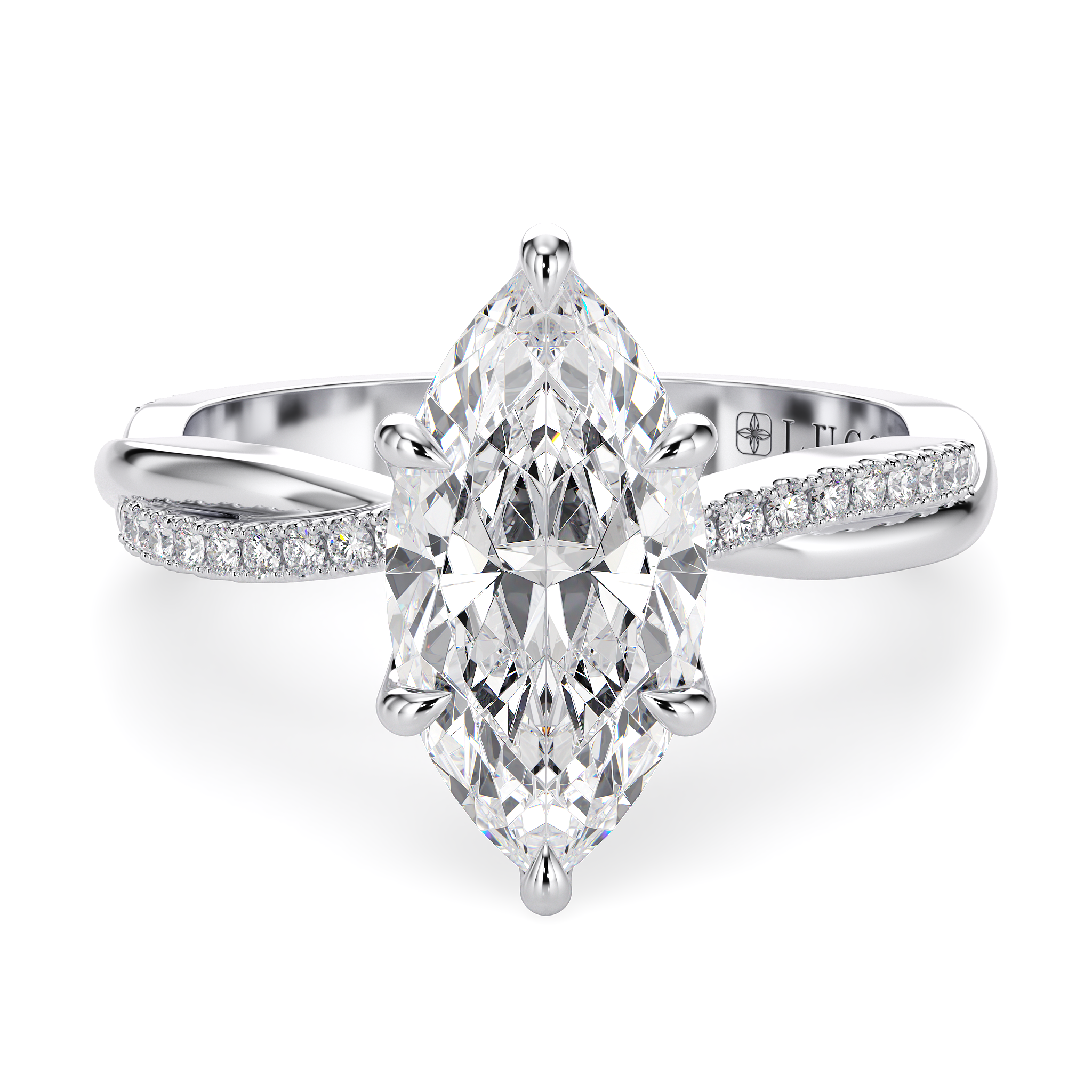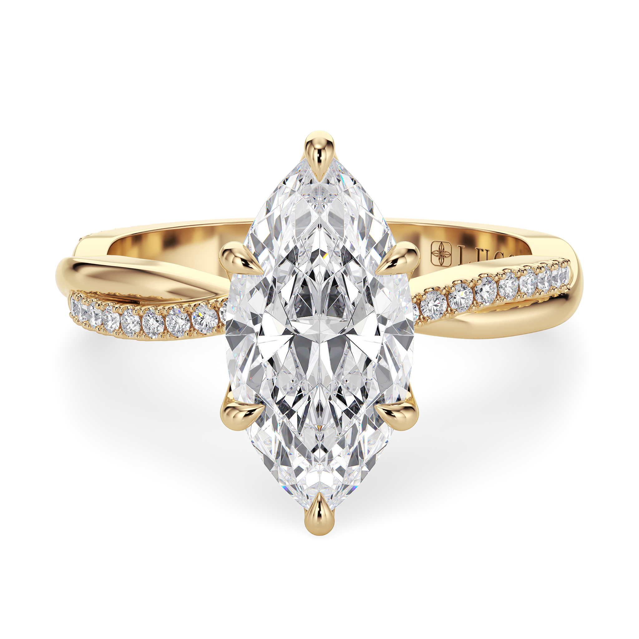This forever piece features a twisting accented band and Lucce’s signature petal prongs. This marquise cut diamond engagement ring's vine-like band symbolizes two lives intertwined by love, forming an infinity that speaks of a bond that is unbreakable. Like a delicate flower found in vines, it reflects how you found her, beautiful, one-of-a-kind, and meant to be.