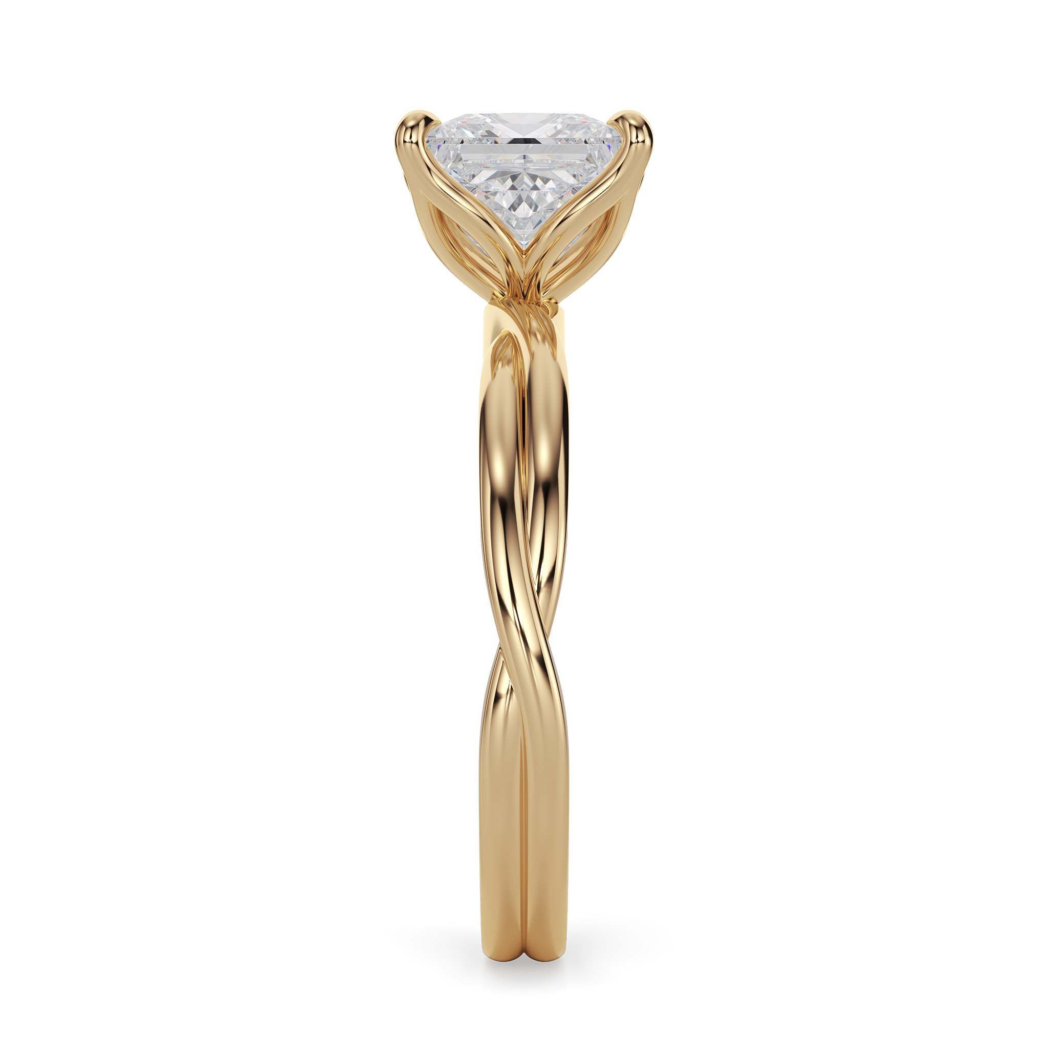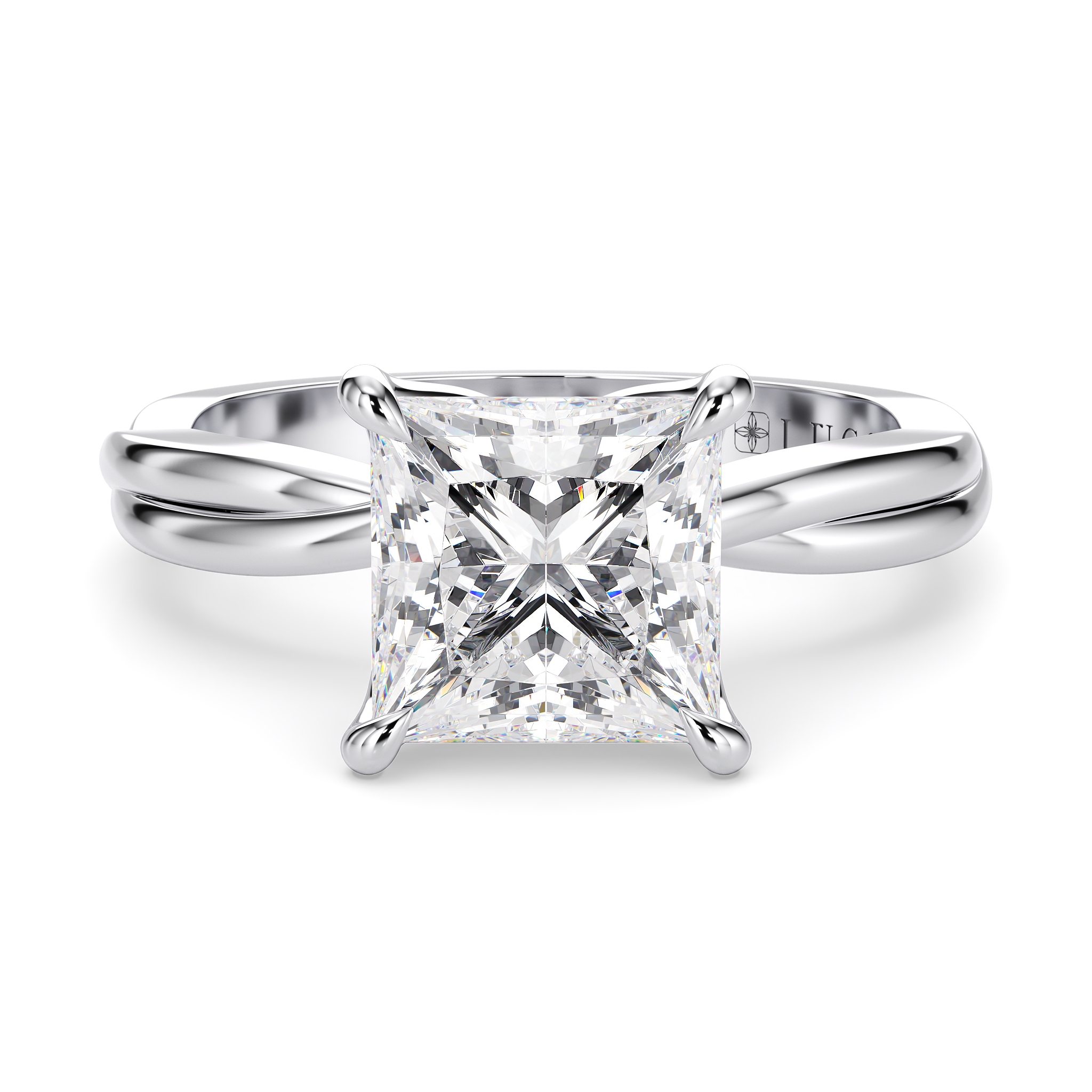 This forever piece features a twisting band and Lucce’s signature petal prongs. This princess cut diamond engagement ring's vine-like band symbolizes two lives intertwined by love, forming an infinity that speaks of a bond that is unbreakable. Like a delicate flower found in vines, it reflects how you found her, beautiful, one-of-a-kind, and meant to be.