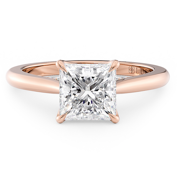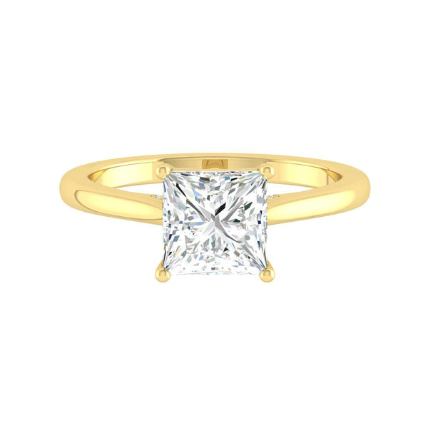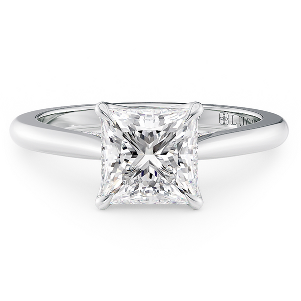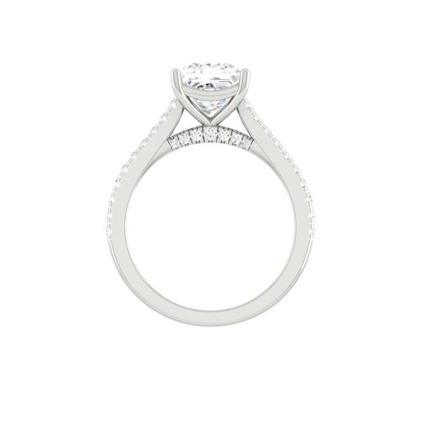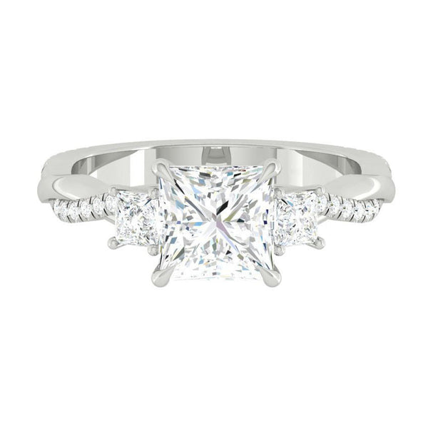 The Princess cut is the most popular fancy shape Moissanite. It is square on the top that features four beveled sides and comes in at a point beneath the shiny surface of the engagement rings.