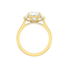 An engagement ring design adorned with three stunning stones — a centerpiece showcasing the finest princess lab-grown diamond, flanked by two pear-shaped diamonds on either side. Crafted with the utmost care, this design serves as a heartfelt declaration of love.