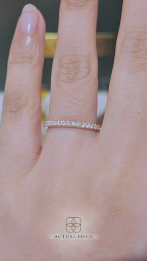 This classic wedding ring features a glittering row of pavé accents across the top half of the band and serves as the perfect complement to many engagement ring styles.