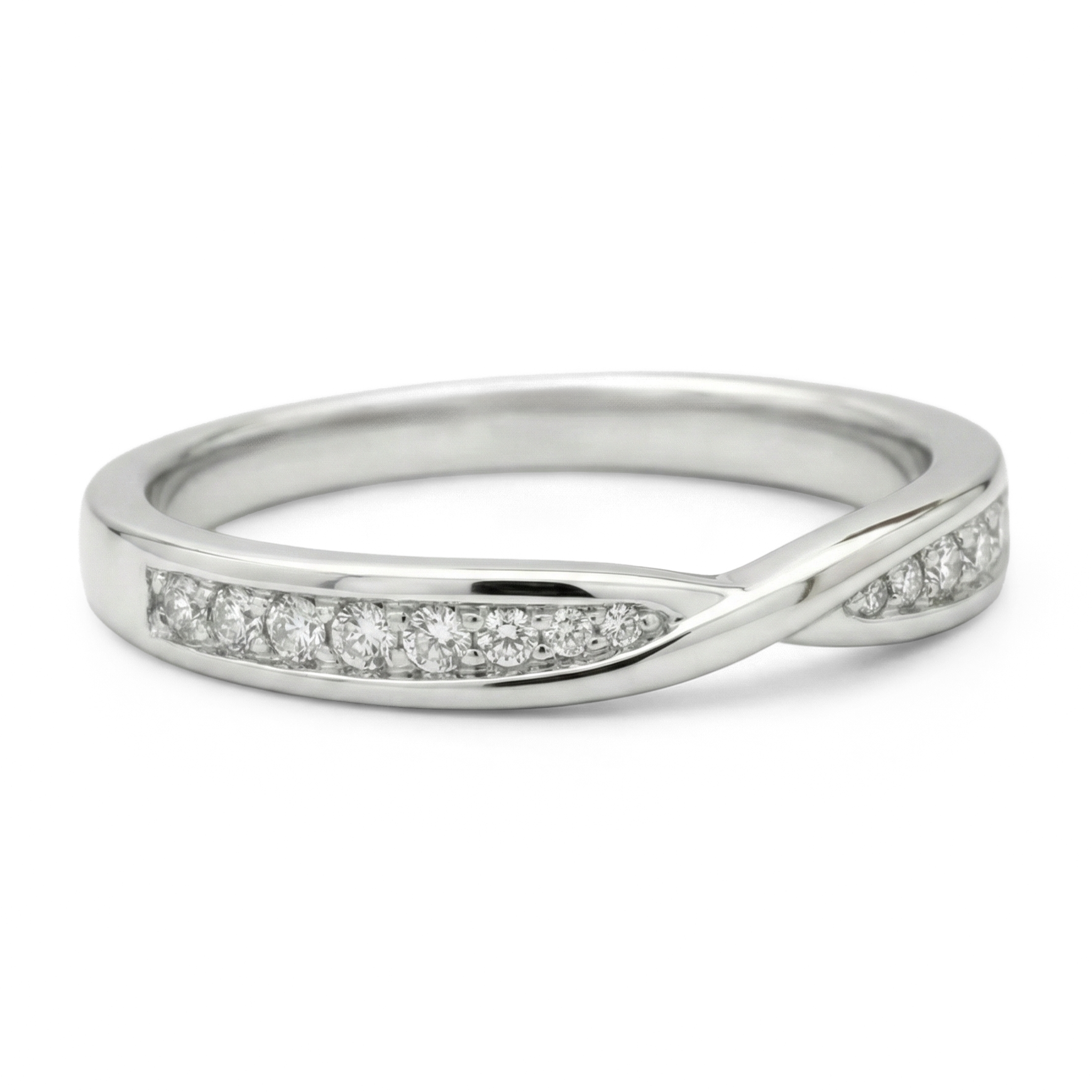 This forever piece features a bright bead pave setting in mobius design. Thoughtfully designed to mirror the grace of the LUCCE ANGELA™ Engagement Ring, the signature twist represents every turn your story will take, the challenges, the changes, the beautiful surprises, and the promise to go through them all, together. This is also the perfect match to the LUCCE ESSO™ Band, reflecting two lives moving through life's every chapter.