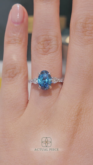 This forever piece is Lucce’s modern take on the timeless three-stone ring with a pavé band. The oval cut engagement ring's trio of diamonds blooms like a bouquet, each stone representing the love you’ve shared in the past, share in the present, and will share in the future. It’s like saying I love you, not just once, but as a promise you’ll keep whispering for a lifetime.