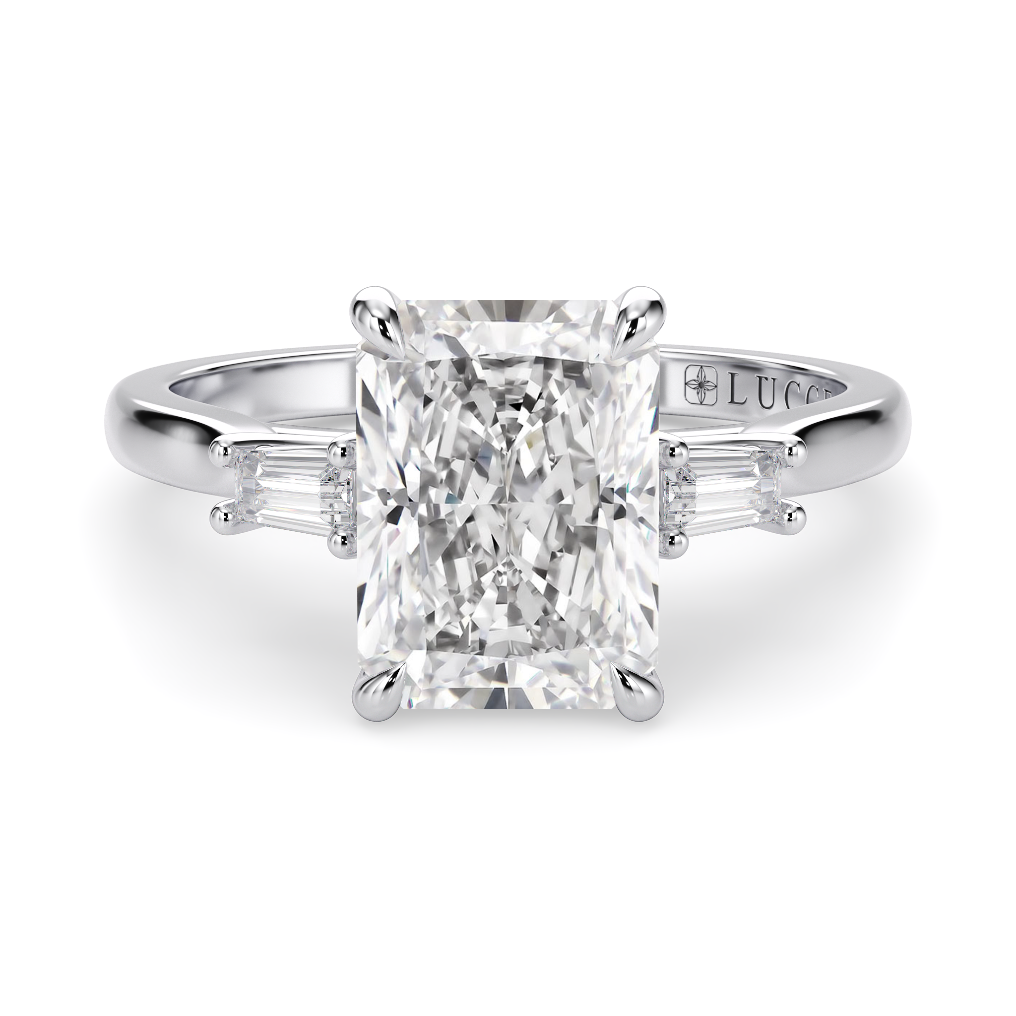 This forever piece is Lucce’s modern take on the timeless three-stone ring. This radiant cut engagement ring's trio of diamonds blooms like a bouquet, each stone representing the love you’ve shared in the past, share in the present, and will share in the future. It’s like saying I love you, not just once, but as a promise you’ll keep whispering for a lifetime.