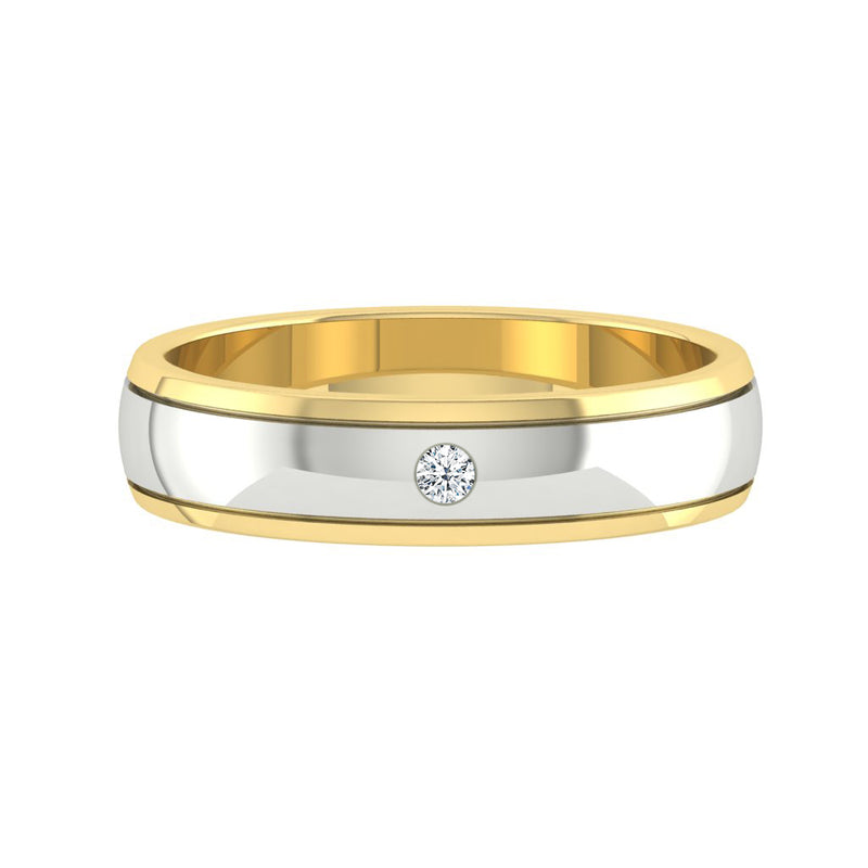 Lucce's Nufelli Mi features a two-tone semi-domed ring, accented by a single sparkling diamond, a beautiful symbol of the unity of two lives. The polished beveled edges catch the light as the diamond shines at its heart—a radiant reminder of your unique bond and enduring love. Elegant and timeless, this ring is a perfect expression of a promise made to last a lifetime.