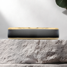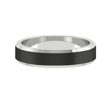 Bold and contemporary, Lucce's Enzo wedding ring features a striking black ruthenium center framed by sleek, high-polish beveled edges. The rich, dark finish of the ruthenium offers a modern contrast to the luminous edges, crafted for a confident love that embraces individuality, this band effortlessly combines strength and style.