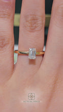 This forever piece features a uniquely wrapped hidden halo and a classic solitaire band. From the top, this emerald cut diamond engagement ring appears simple and elegant, but from another angle, a hidden sparkle is revealed, just like her and the quiet depth of the love you share. The wrapped halo symbolizes your heartfelt promise to keep her safe, embraced in your arms and cherished for all the days to come.
