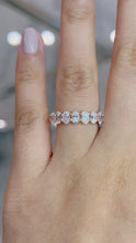 This timeless 7-Stone ring showcases the pure brilliance of the oval cut diamonds in a refined trellis settings. This band is a perfect wedding or anniversary ring and signifies the promise of fulfillment of promises and oaths.