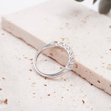 This timeless 7-Stone ring showcases the pure brilliance of the gemstones in refined trellis settings. This band is a perfect wedding or anniversary ring and signifies the promise of fulfillment of promises and oaths.