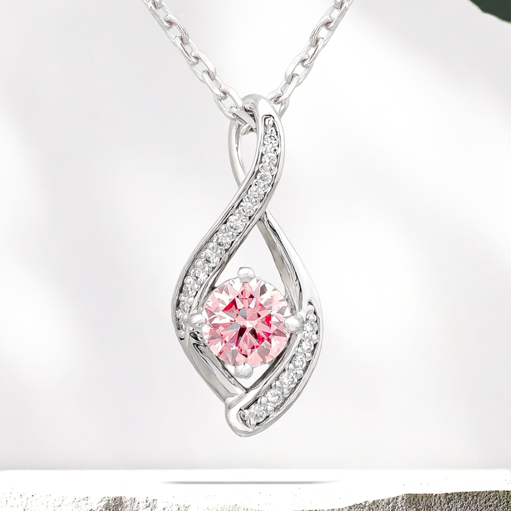 The Fiore Infinity Necklace Rosé Pink reflects your pure, unending love with twisting vines in an infinite loop. Its compass setting showcases the brightest diamond as a lasting reminder of your love’s true brilliance and shine.