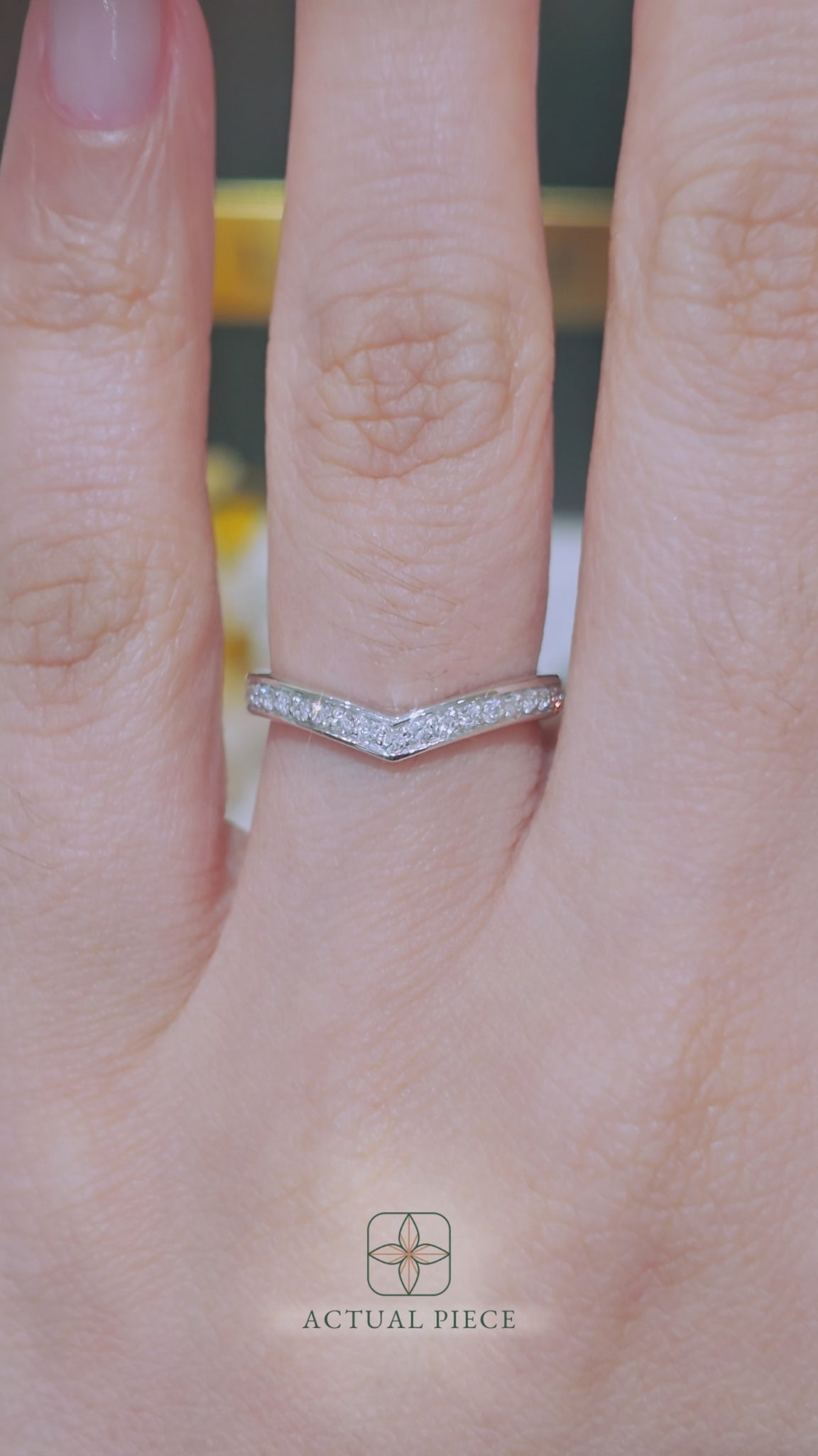The twist of this mobius pavé signifies how life and love has turned into something much more beautiful, becoming more alive and fuller. This accented band presents a modern take on a classic choice.